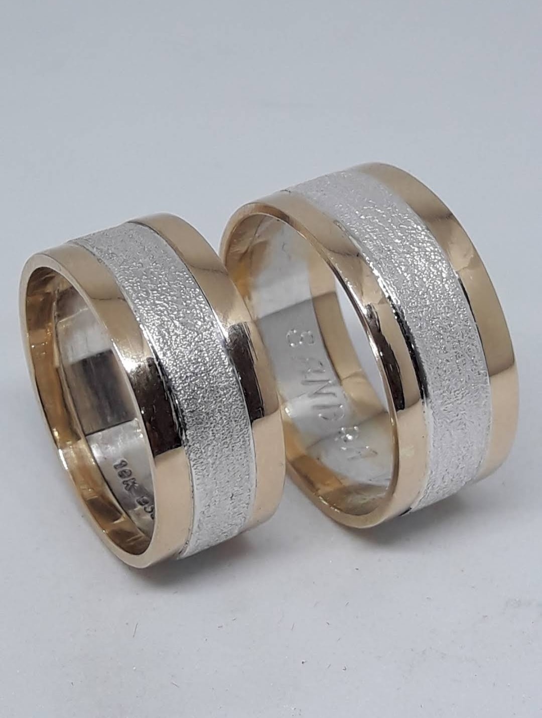 Argolla de matrimonio plata 950 con oro 18k (lámina) cinta al centro