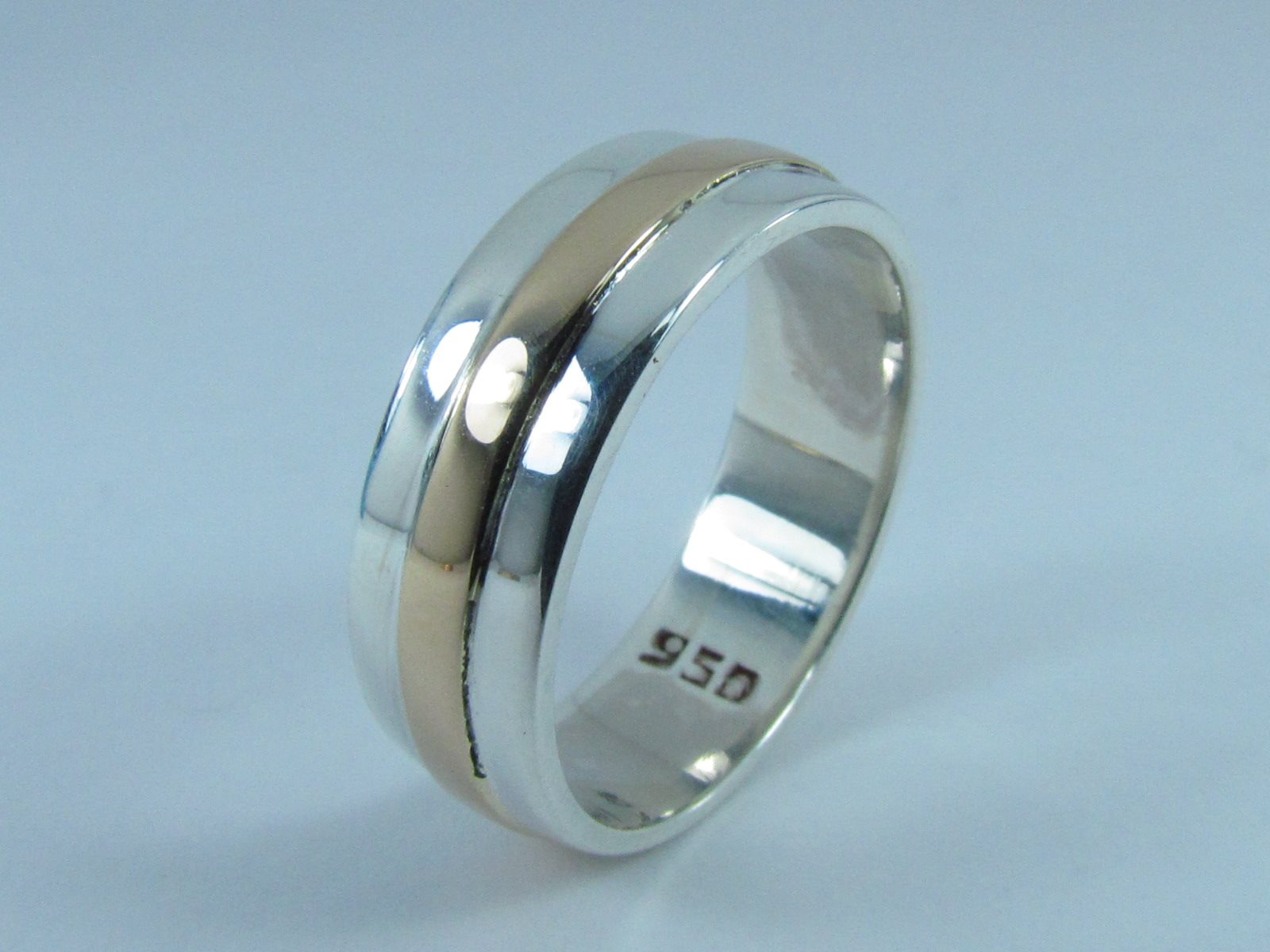 Argolla de matrimonio plata 950 con oro 18k (lámina) cinta al centro